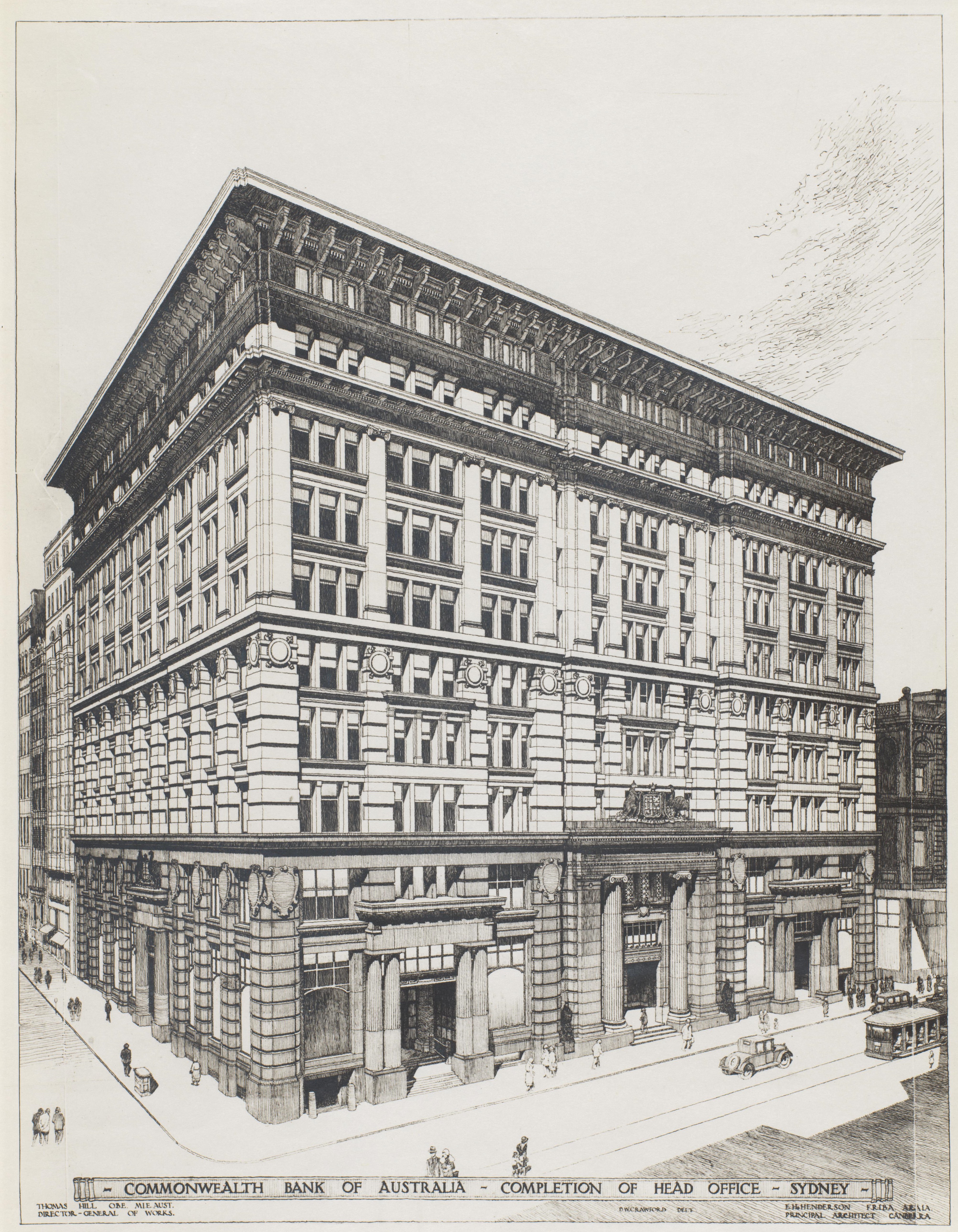 The Commonwealth Department of Works was commissioned to undertake the extension, and Henderson, as Chief Architect, would be the designer. He had in 1929 undertaken a world trip to study bank architecture so was well placed to ensure the design reflected international trends.